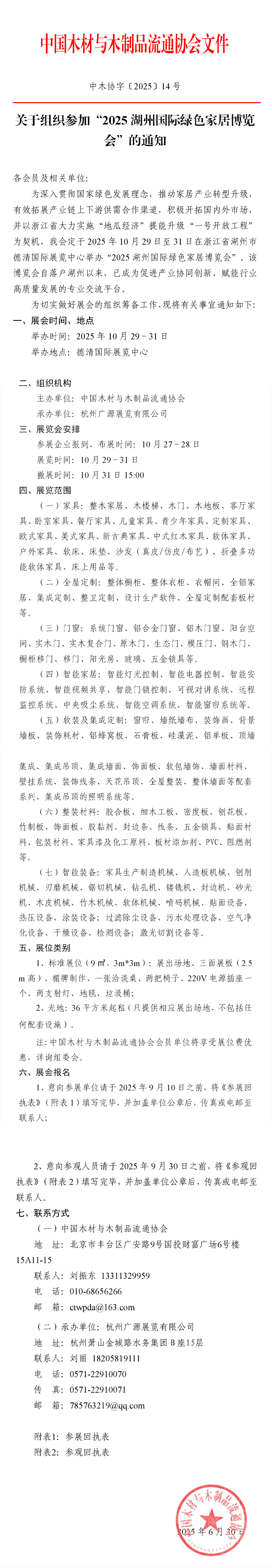 中國(guó)木材與木制品流通協(xié)會(huì)關(guān)于組織參加“2025湖州國(guó)際綠色智能家居博覽會(huì)”的通知
